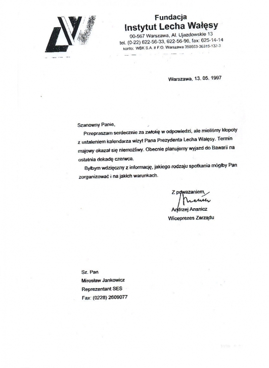 Markus Jankowicz trifft den ehemaligen polnischen Präsidenten Lech Wałęsa 09.08.1995