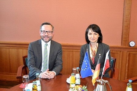 Das Gespräch der Unterstaatssekretärin Henryka Mościcka-Dendys mit Staatsminister Michael Roth betraf die aktuelle EU-Problematik am Vortag der Sitzung des Europäischen Rates. Die Gesprächspartner behandelten die mit dem derzeitigen Stand der Situation um Griechenland verbundenen Herausforderungen. Sie stimmten darin überein, dass die Probleme dieses Landes systemischen, und nicht fiskalischen Charakters seien und dass man ihre Lösung langfristig zu betrachten habe. Die Minister Mościcka-Dendys und Roth wiesen darüber hinaus auf die Notwendigkeit hin, die europäische Einigkeit in der Russlandpolitik angesichts des Konflikts um die Ukraine aufrechtzuerhalten.