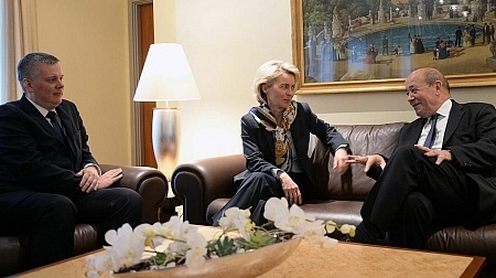 Tomasz Siemoniak, Ursula von der Leyen und Jean-Yves le Drian unterzeichneten bei ihrem Treffen in Potsdam einen Brief an die Außenbeauftragte der Europäischen Union Federica Mogherini, der Reformvorschläge für die GSVP der Europäischen Union enthält.